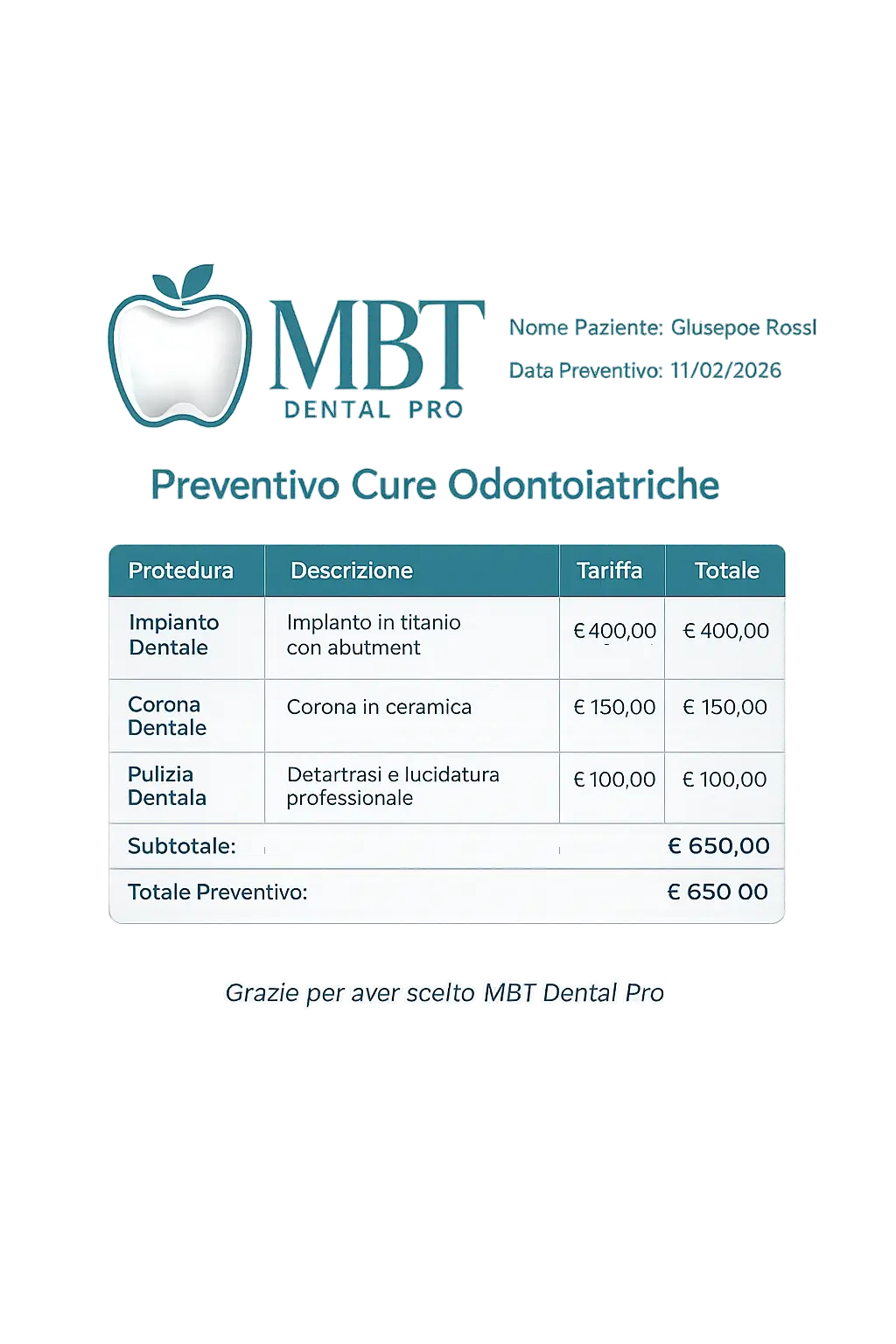 Un preventivo chiaro e dettagliato è fondamentale per capire cosa è incluso nel trattamento e quali potrebbero essere eventuali costi aggiuntivi.